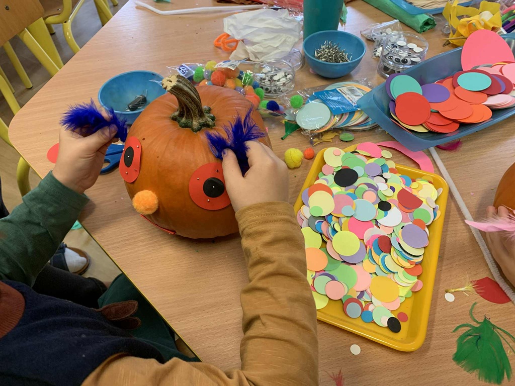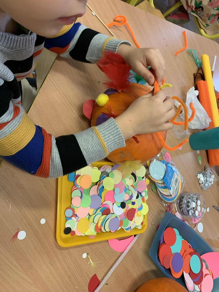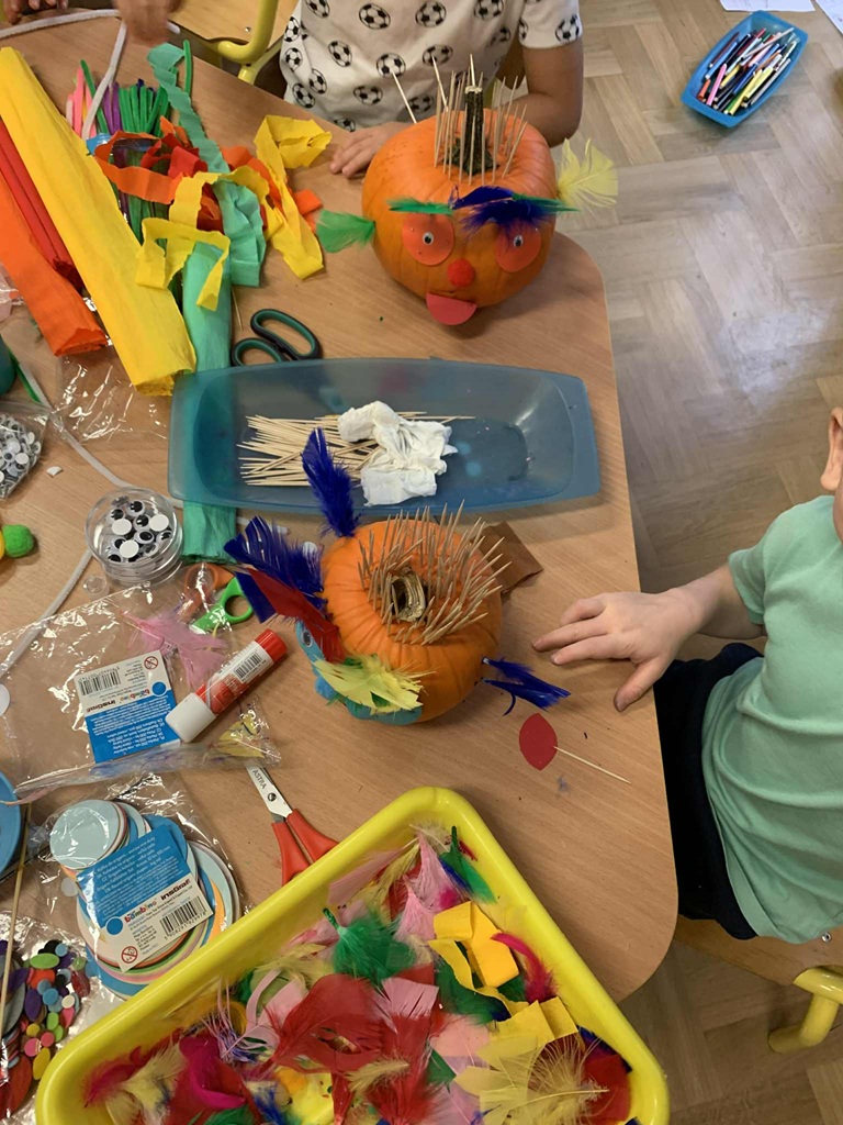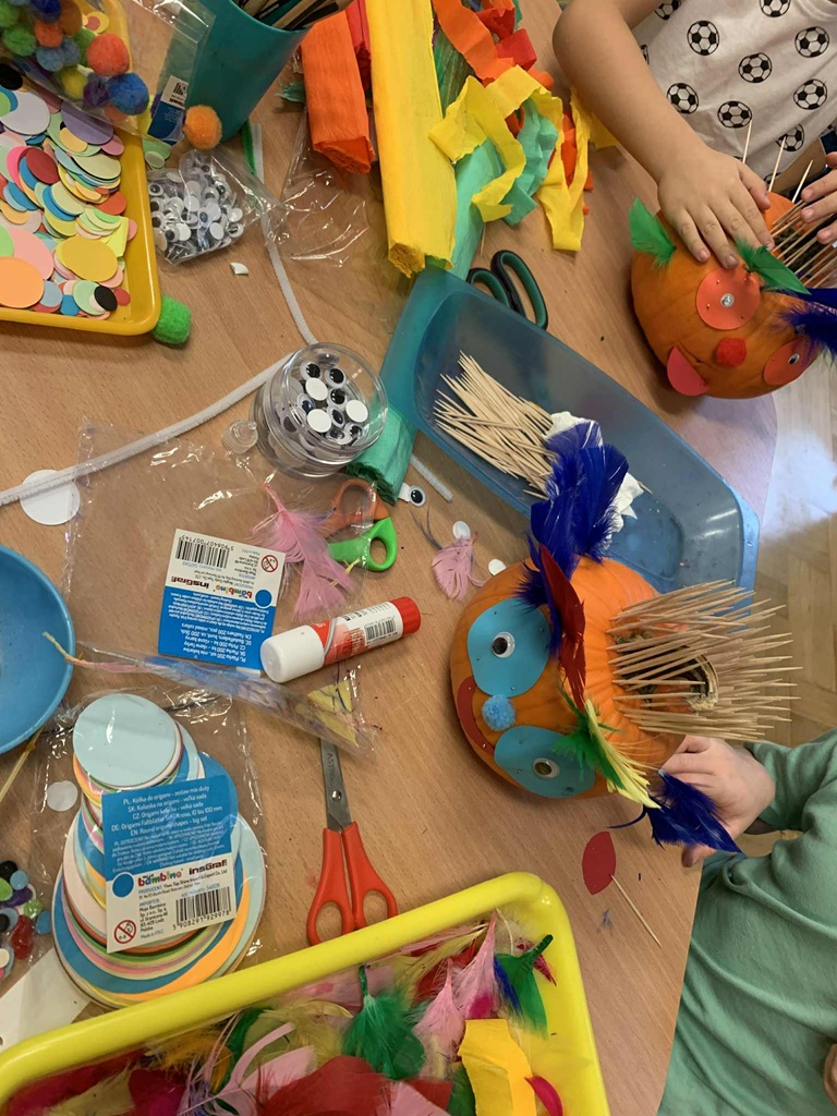 Pod koniec października w naszym przedszkolu obchodziliśmy Święto Dyni – pełne kolorów, uśmiechu i kreatywnej zabawy! Dzieci wspólnie z rodzicami przyniosły do przedszkola swoje dynie, które wspólnie ozdabialiśmy farbami, bibułą, plasteliną i innymi materiałami plastycznymi. Powstały prawdziwe dyniowe arcydzieła – wesołe, straszne i bajkowe!