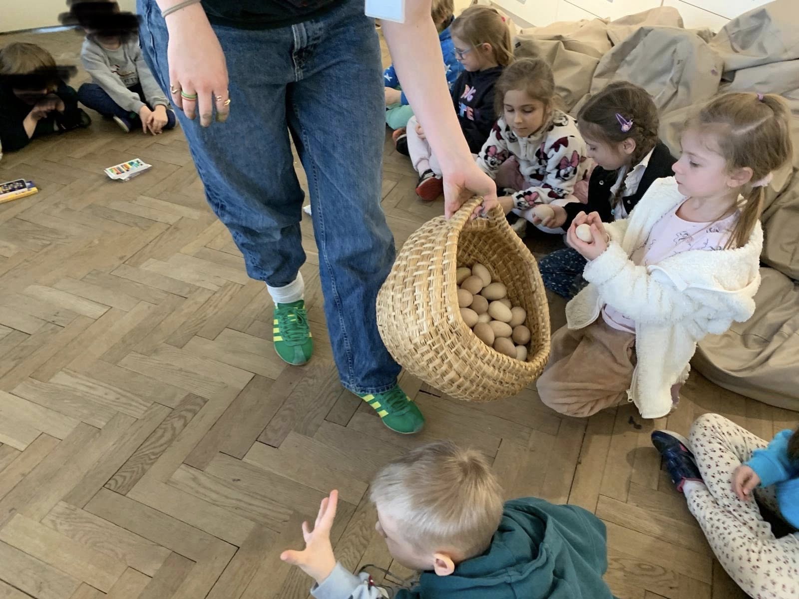 Podczas zajęć dzieci miały okazję poznać Muzeum Etnograficzne oraz porozmawiać o oznakach wiosny i tradycjach Wielkanocnych. Nie zabrakło ciekawych opowieści, wspólnej rozmowy oraz twórczej aktywności, która wzbudziła wiele radości i uśmiechów. To było bardzo wartościowe i inspirujące spotkanie z kulturą i tradycją!